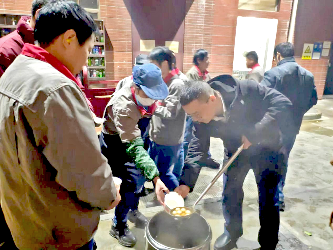 面對員工飽滿的工作熱情,在冬至到來之際的寒冷夜晚,公司人力資源總監(jiān)胡坤麗與各子分公司工會主席帶著深切牽掛,前往生產(chǎn)一線,向持續(xù)奮戰(zhàn)的員工表示關(guān)心和問候。各公司工會細(xì)心地為員工們準(zhǔn)備了熱乎的紅糖水和甜甜糯糯的湯圓,希望這傳統(tǒng)的冬至食品能為辛勤工作的員工們驅(qū)散寒冷,帶來一絲家的溫馨。